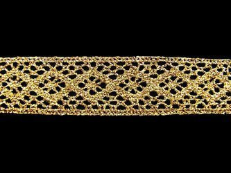 Eleganckie koronki z metaliczną nitką, idealne do efektownych dekoracji i wykończeń.