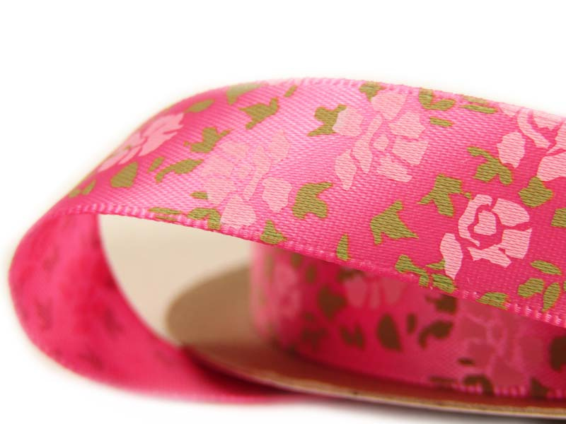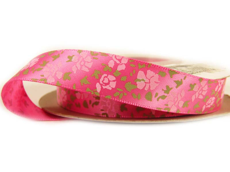 Satynowa wstążka o szerokości 1,6cm w kolorze z pięknym kwiatowym nadrukiem.