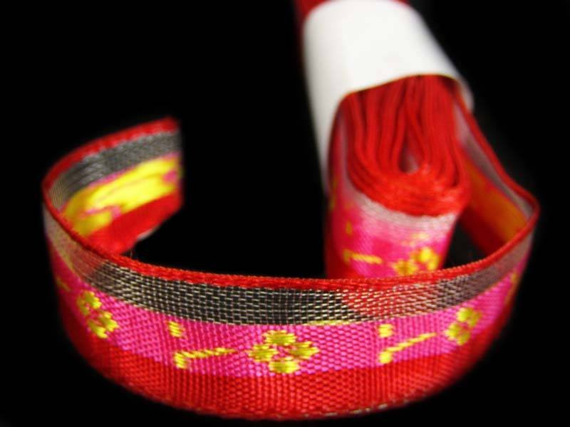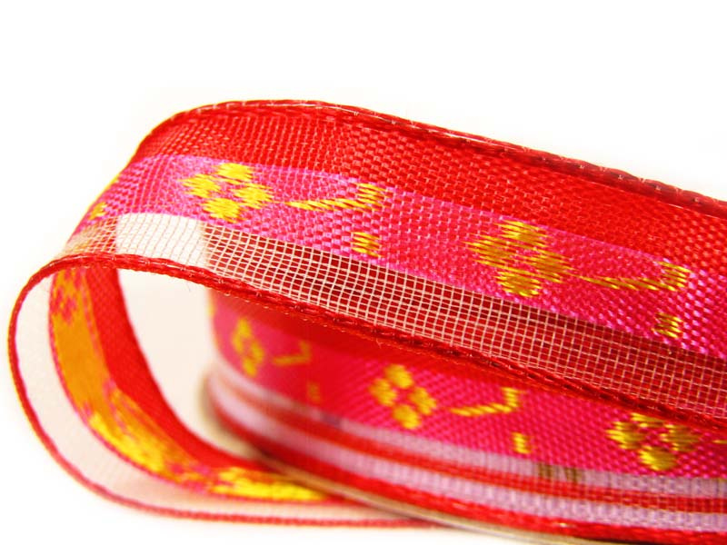 Wstążka 15mm organtyna KWIATUSZKI czerwona