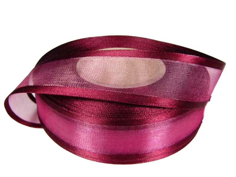 Wstążka z organtyny o szerokości 2,5cm z ozdobnym, atlasowym brzegiem w tym samym kolorze.