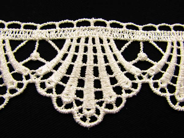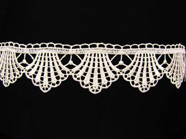- Koronka gipiurowa o szerokości 5,5cm w kolorze ekri zrobiona z błyszczącej nitki.