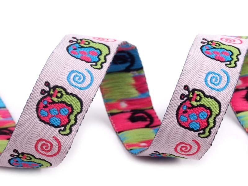- Taśma haftowana o szerokości 1,6cm z dziecięcym wzorem w kolorze.