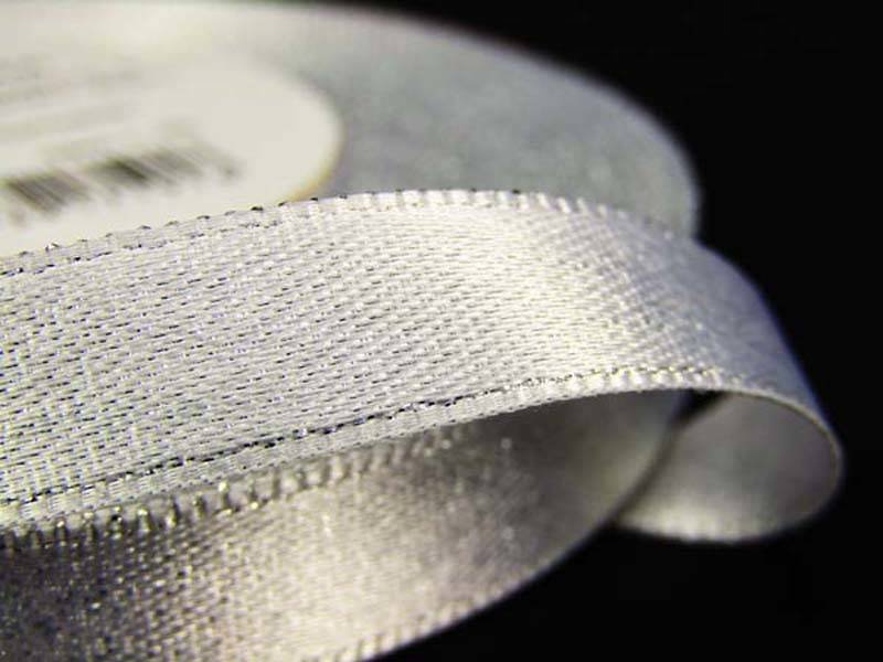 Wstążka atłasowa z nitką metalizowaną o szerokości 1cm w kolorze.
