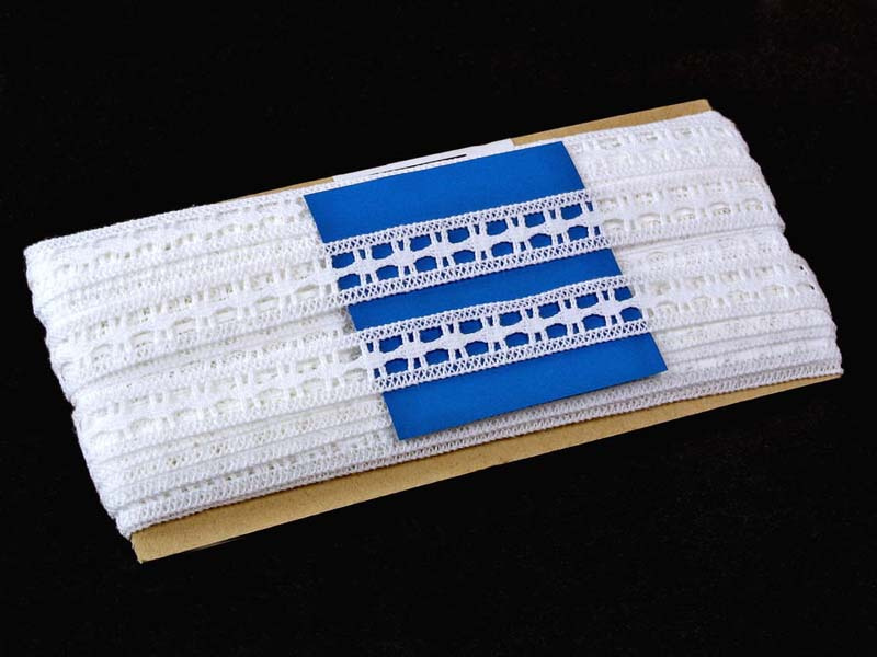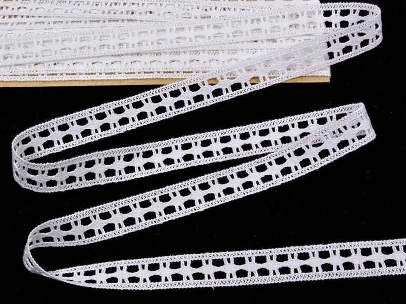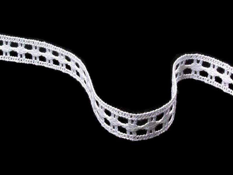 Koronka bawełniana o symetrycznych brzegach w szerokości 1,6cm w kolorze białym.