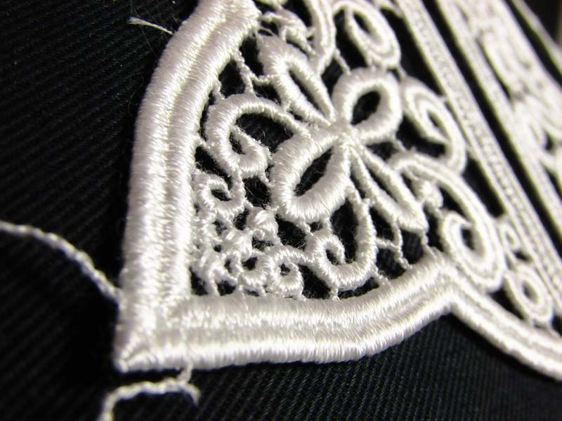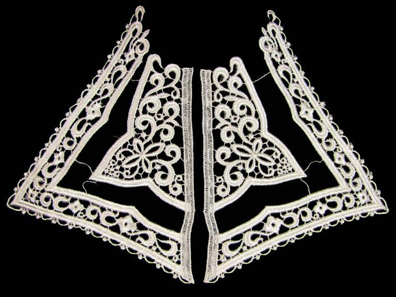 Damski kołnierzyk wykonany z białej błyszczącej gipiury.