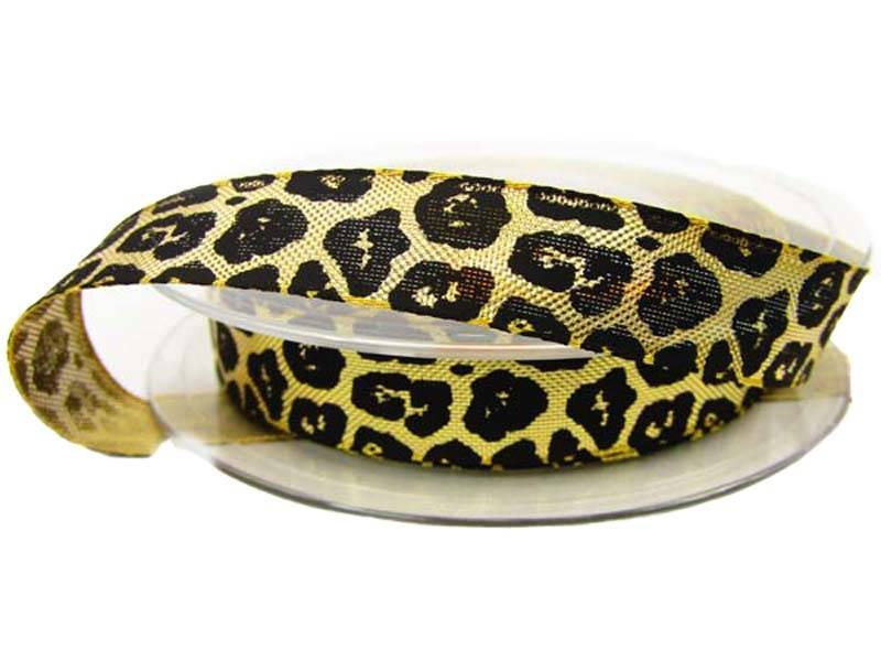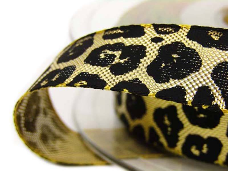 Wstążka metalizowana z nadrukowanym czarnym wzorem zwierzęcym.