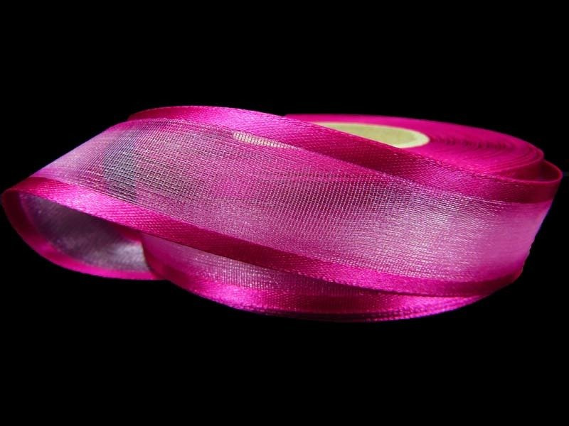 Wstążka z organtyny o szerokości 2,5cm z ozdobnym, atlasowym brzegiem w tym samym kolorze.