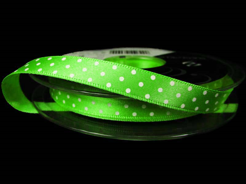 Wstążka 10mm atłasi MICRO DOT pistacja