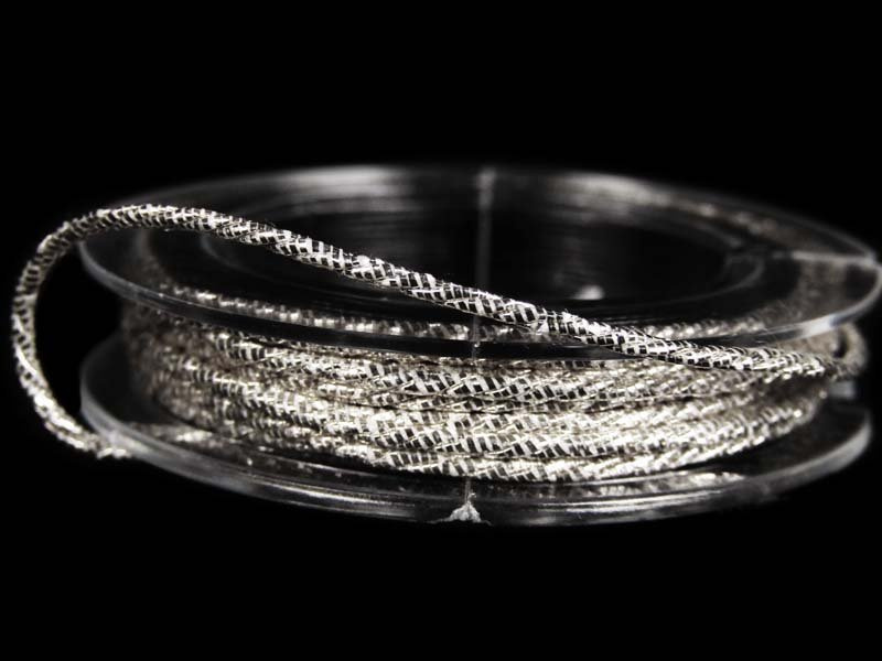 Skręcony metalizowany, srebrny sznurek o grubości 1,2mm.
