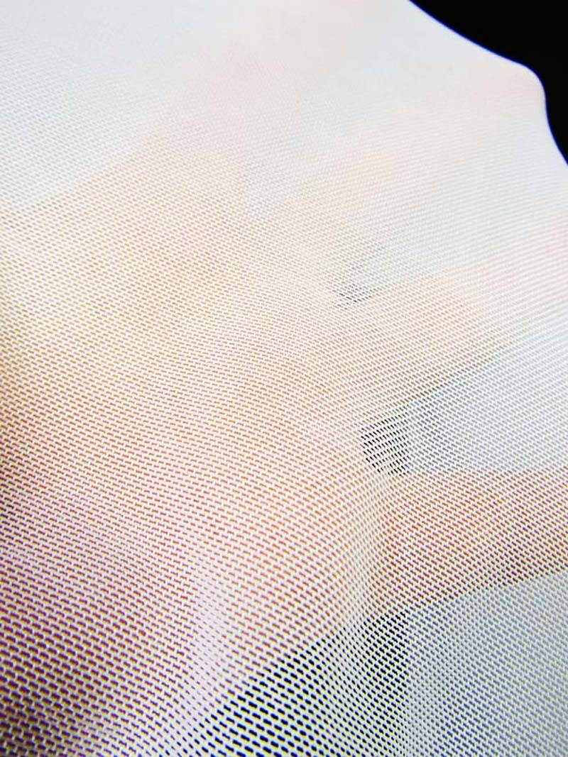 Bardzo miękka, lejąca i śliska tkanina elastyczna w kolorze białym. Tkanina ciągnie się na szerokości jak i na długości. Używany przy produkcji bielizny, odzieży sportowej jak i damskiej.