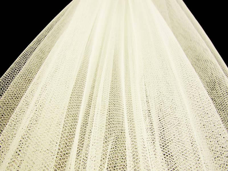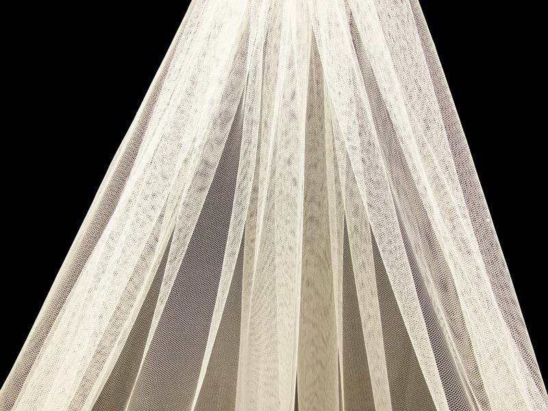 Tiul z rodzaju stabilnych, miękkich i lejących. Idealny na doły sukni ślubnych czy wieczorowych np. spódnic czy na rękawy. Używany również przy dekoracji okien.