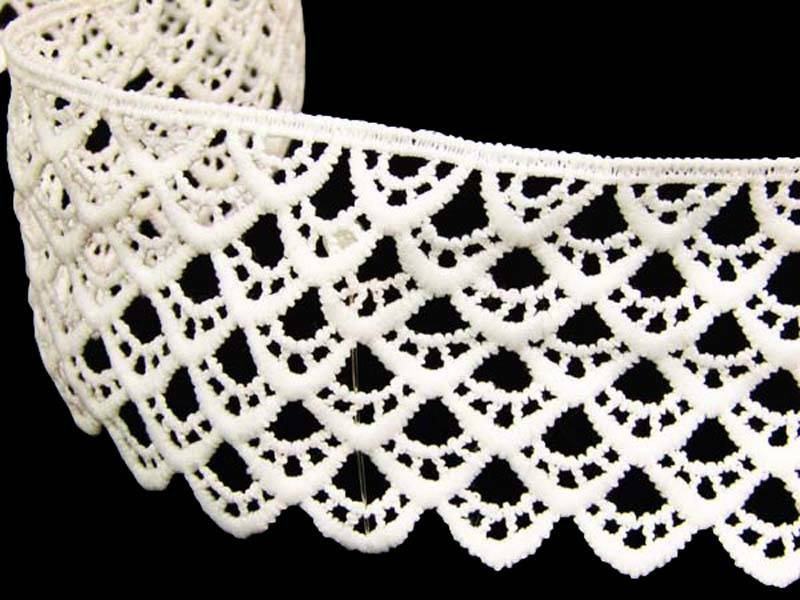 Koronka gipiurowa o szerokości 6cm w kolorze o matowym wykończeniu.