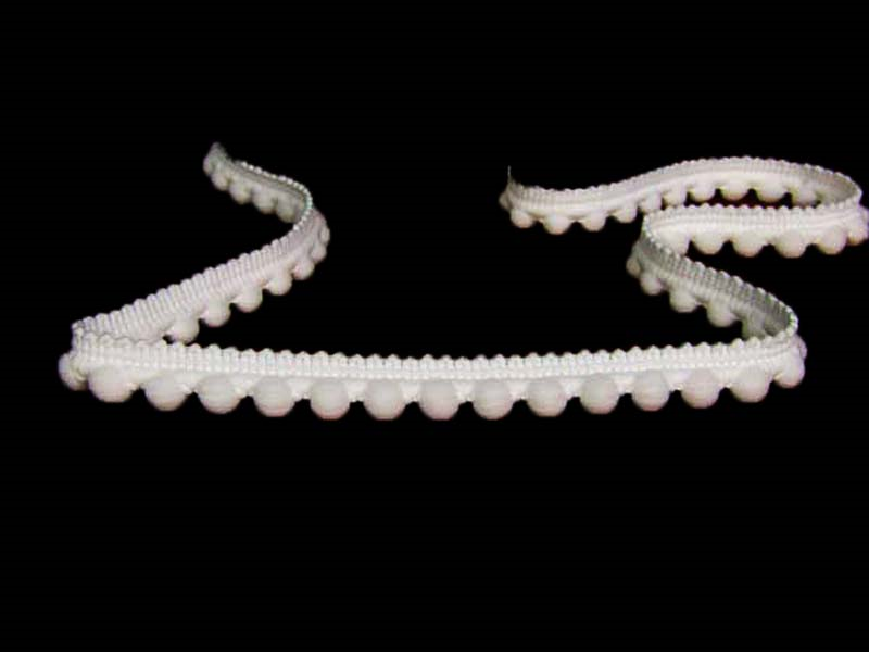 Pompony poliestrowe na taśmie o szerokości 1,5cm w kolorze.