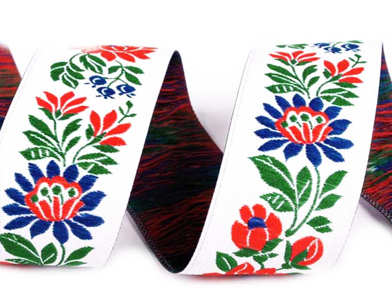 Taśma żakardowa o szerokości 35mm pierwotnie przeznaczona do ozdabiania strojów ludowych, dziś używana jest również do ozdabiania odzieży, tekstyliów do mieszkań, zabawek i przedmiotów upominkowych. Oferuje nieograniczone możliwości zastosowania.
