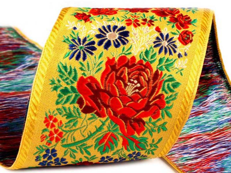 - Taśma żakardowa pierwotnie przeznaczona do ozdabiania strojów ludowych.
