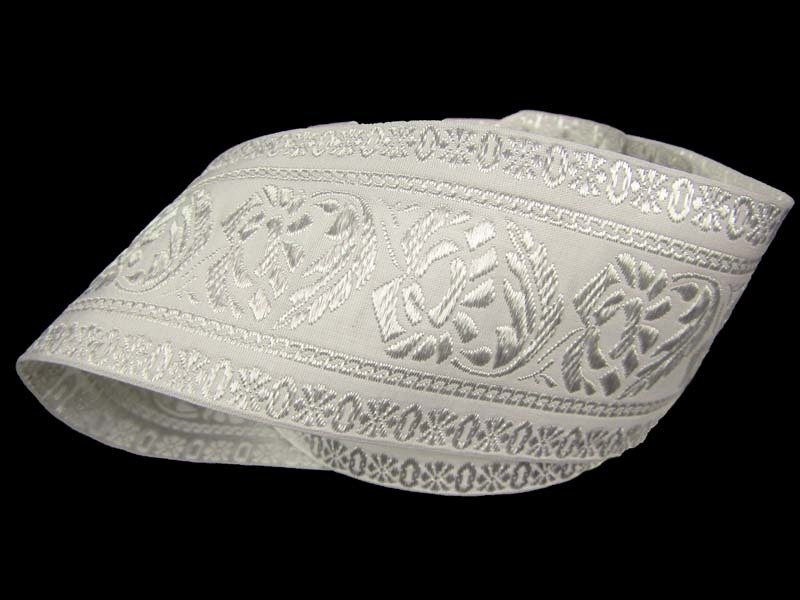 Taśma 55mm żakard biała