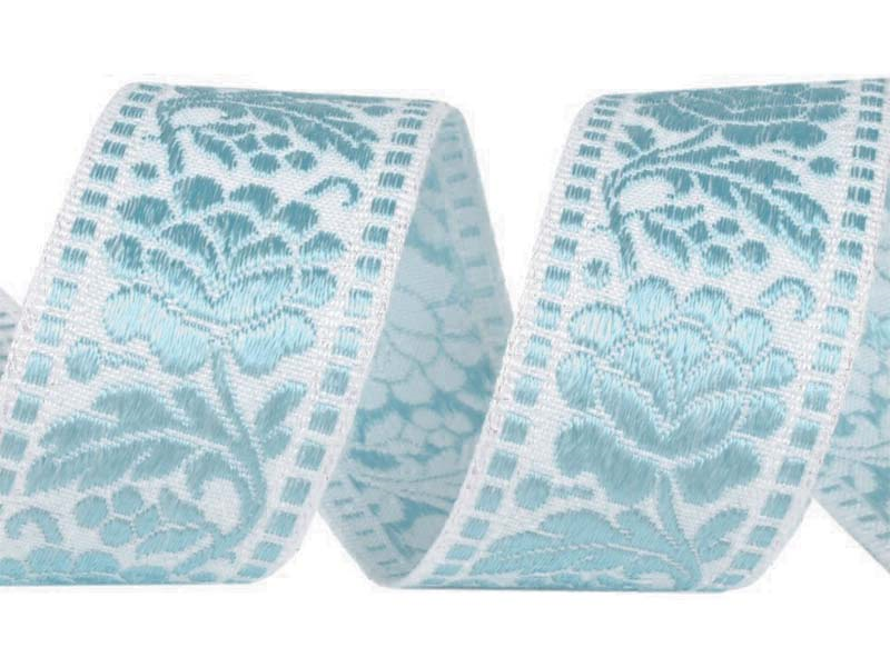 Taśma 40mm żakard KWIAT błękitna