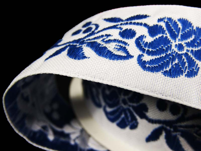 - Taśma o szerokości 2,5cm z kolorowym, kwiatowym haftem na taśmie.