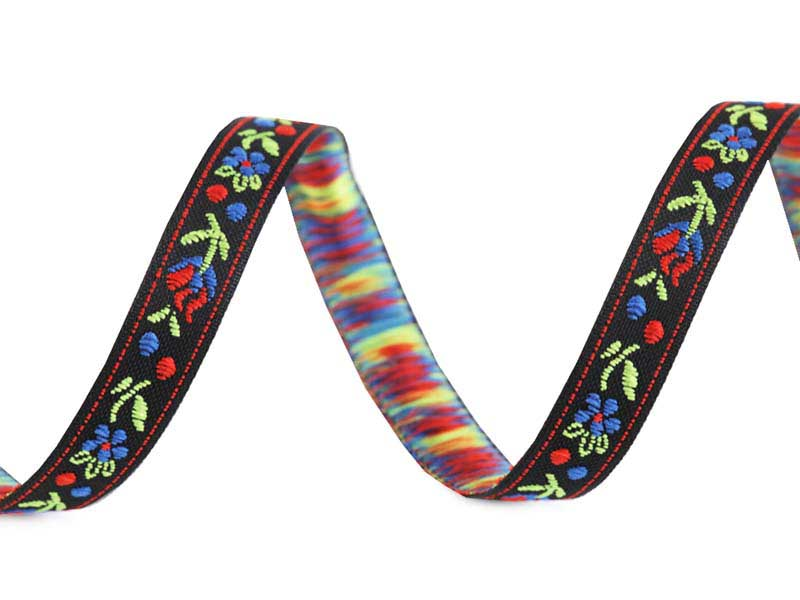 Taśma żakardowa pierwotnie przeznaczona do ozdabiania strojów ludowych, dziś używana jest również do ozdabiania odzieży, tekstyliów do mieszkań, zabawek i przedmiotów upominkowych. Oferuje nieograniczone możliwości zastosowania. Taśma żakardowa tkana maszynowo i wykonana z przędzy poliestrowej.