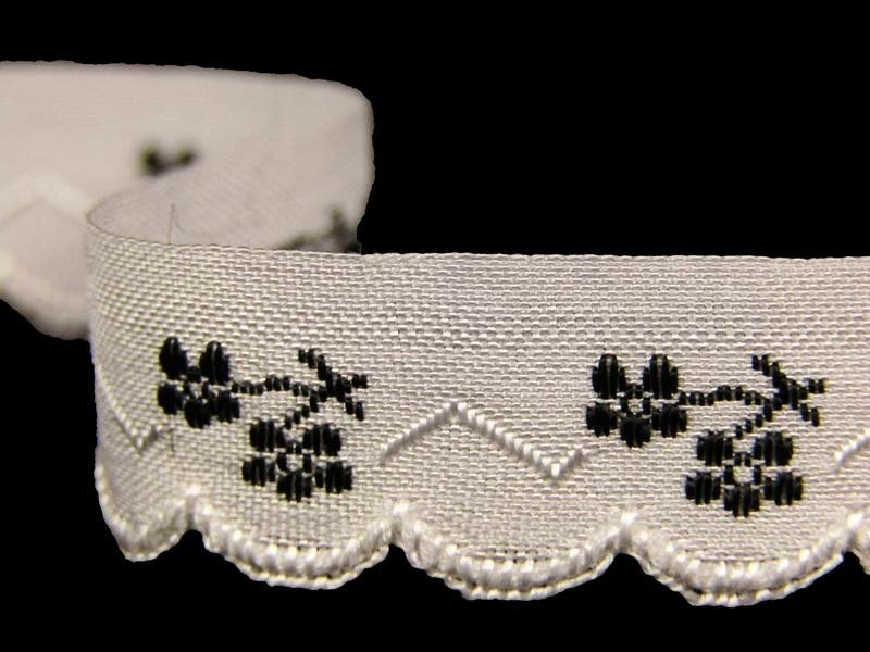 • Jednostronnie wykończona ozdobna taśma z wiskozowym haftem o szerokości 1,5cm w kolorze.