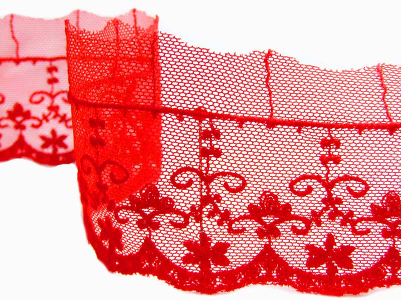 - Koronka tiulowa o szerokości 5cm z haftem wykonanym matową nitką.