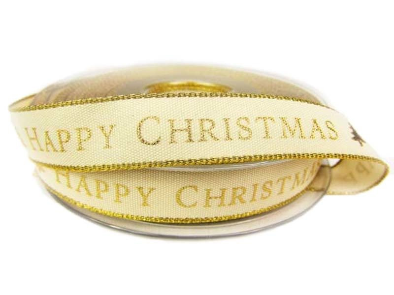 Wstążka 15mm tafta HAPPY CHRISTMAS ekri