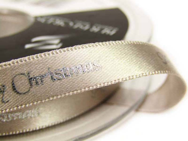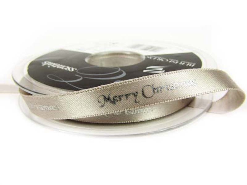 Wstążka 10mm atłas MERRY CHRISTMAS popiel
