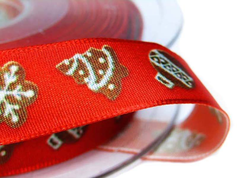 - Wstążka z tafty o szerokości 1,6cm z nadrukiem świątecznym.