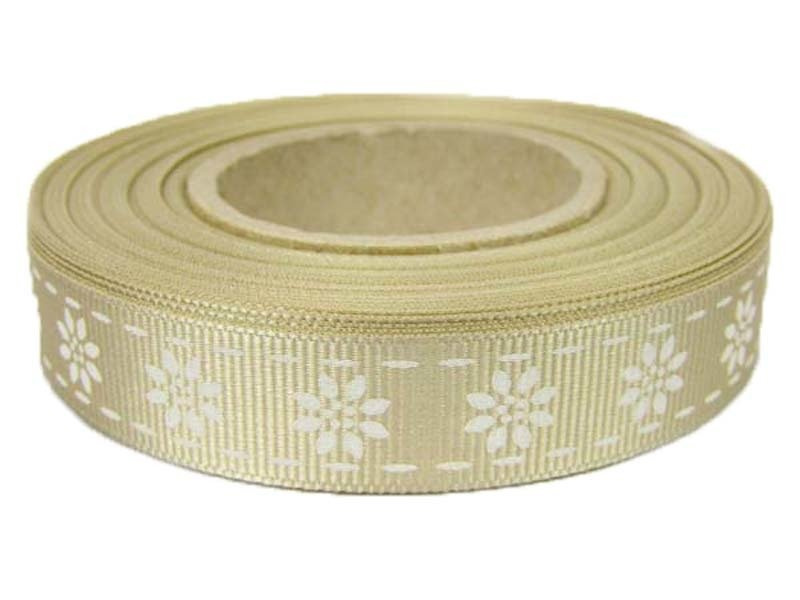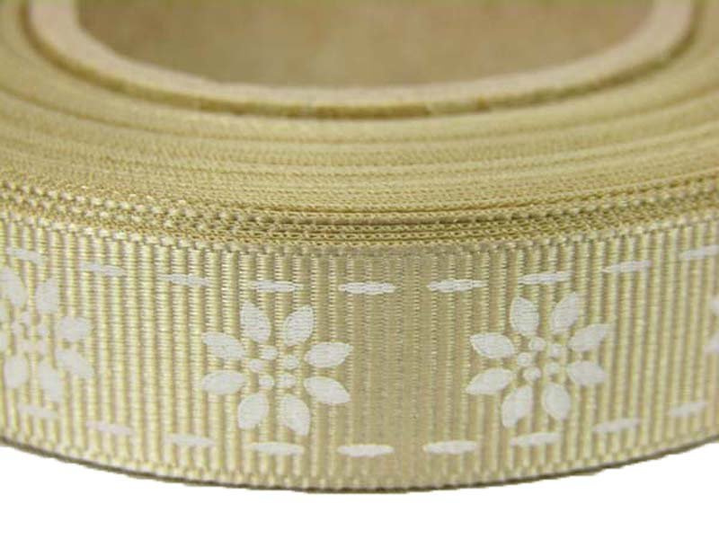 Wstążka rypsowa o szerokości 15mm z białym nadrukiem w kolorze.