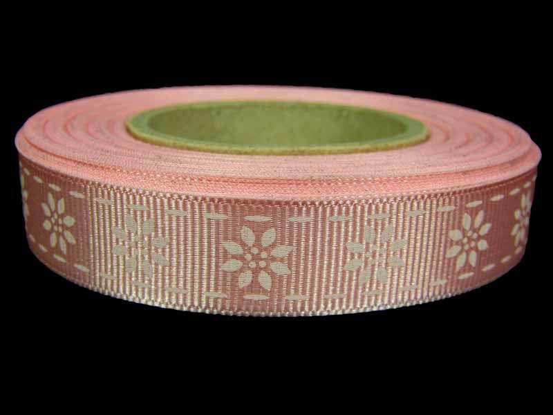 Wstążka 15mm ryps KWIATEK pudrowy róż