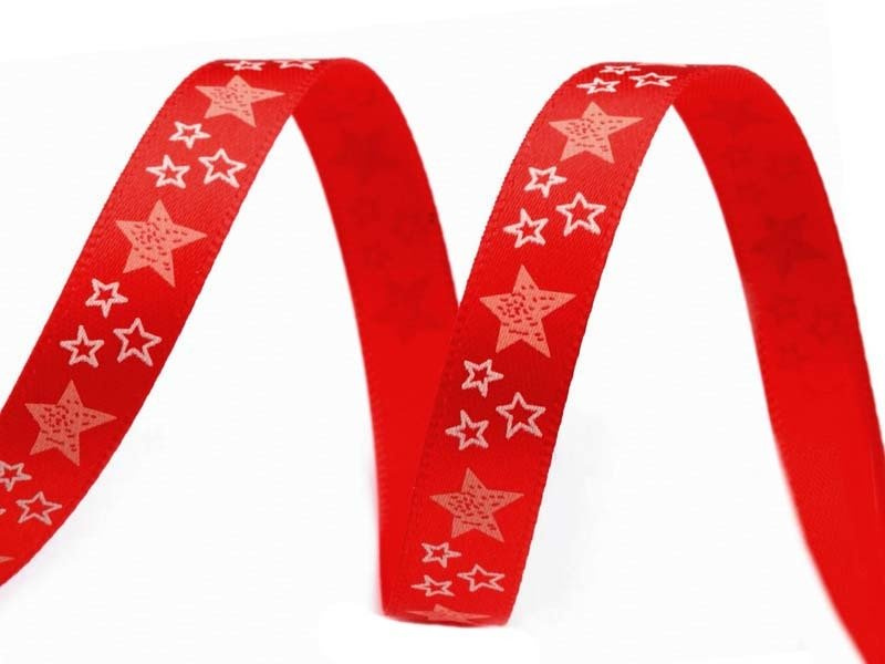Wstążka 10mm atłas GWIAZDKA czerwona