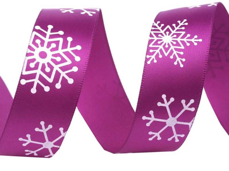 Wstążka 20mm atłas PŁATKI ŚNIEGU fiolet