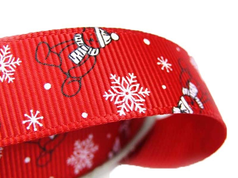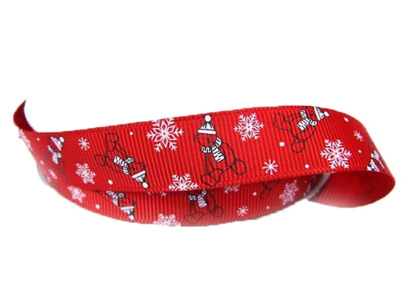 - Wstążka rypsowa czerwona o szerokości 1,6cm z nadrukiem świątecznym.