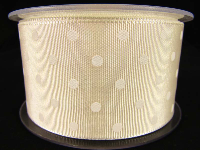 Wstążka 48mm ryps dwustronna KROPECZKA ecru