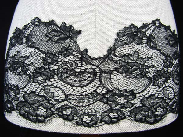 Koronka stabilna o szerokości 15cm w kolorze czarnym wykończona u dołu niteczkami.