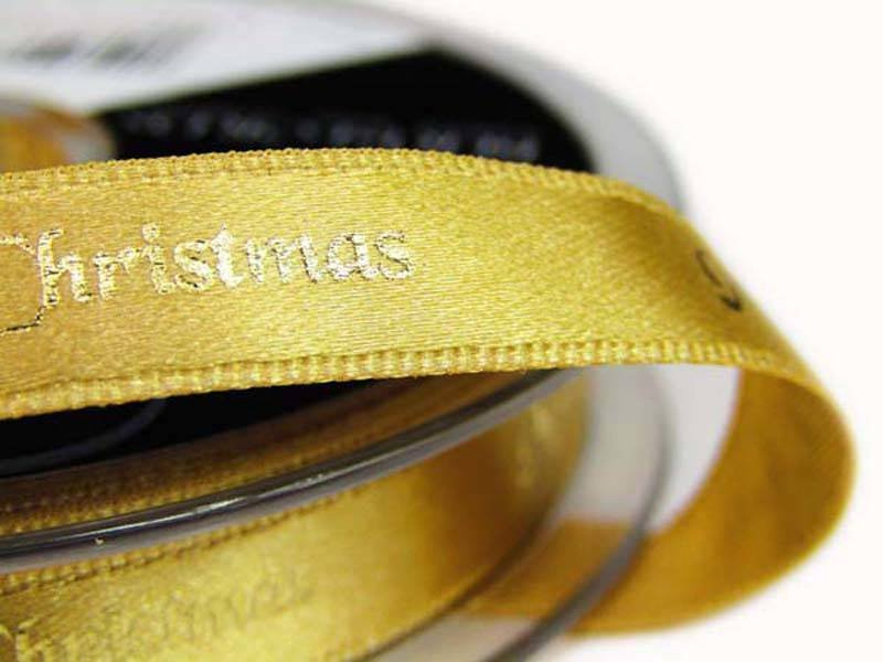 - Atłasowa wstążka o szerokości 10mm z błyszczącym świątecznym napisem.