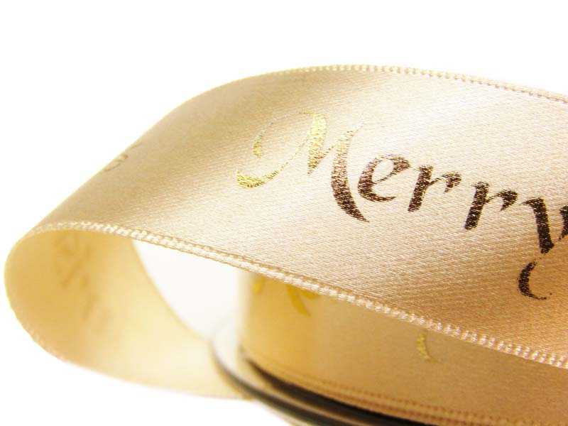 Wstążka 25mm atłas MERRY CHRISTMAS ecru