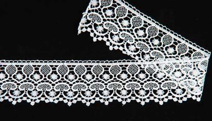 - Koronka gipiurowa o szerokości 8cm w kolorze ekri.