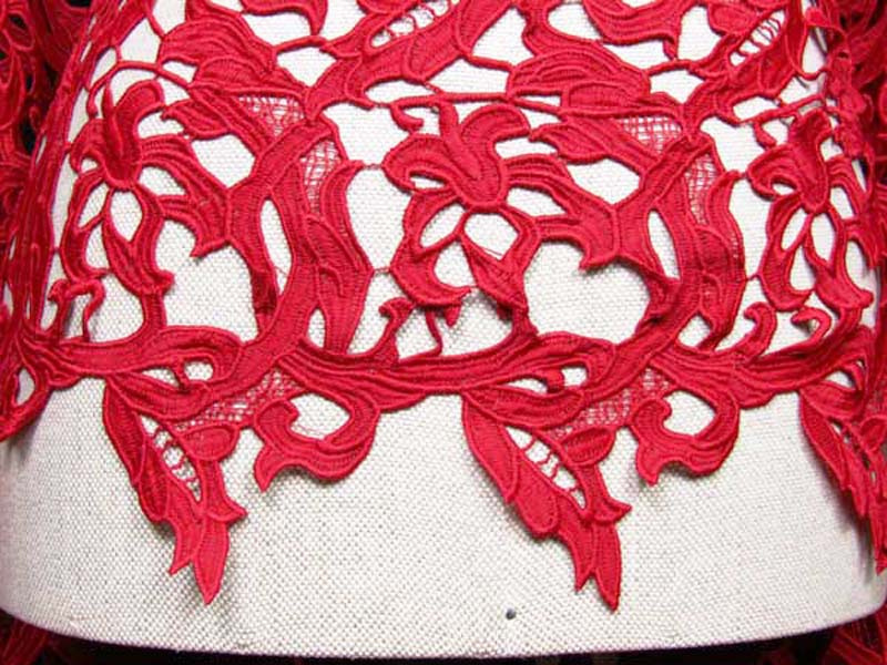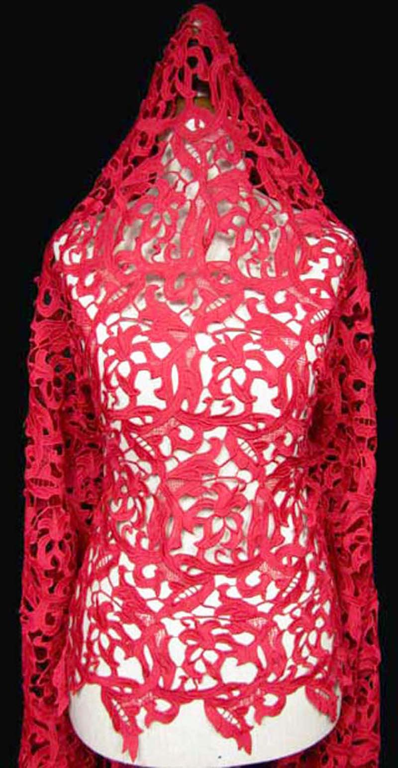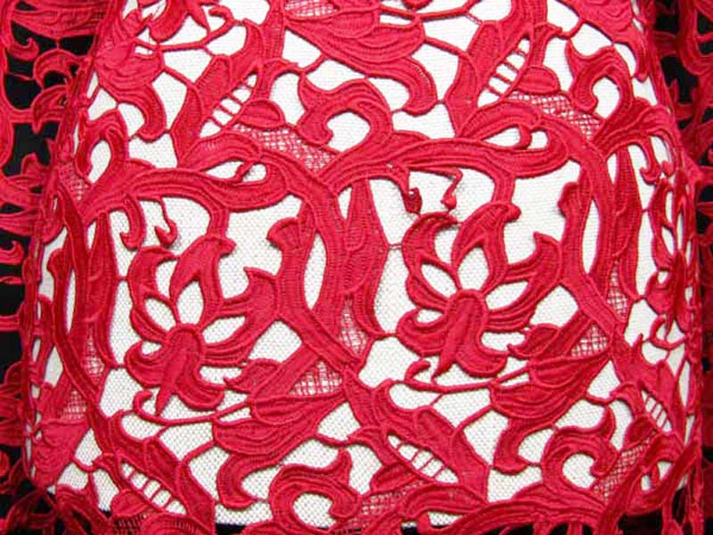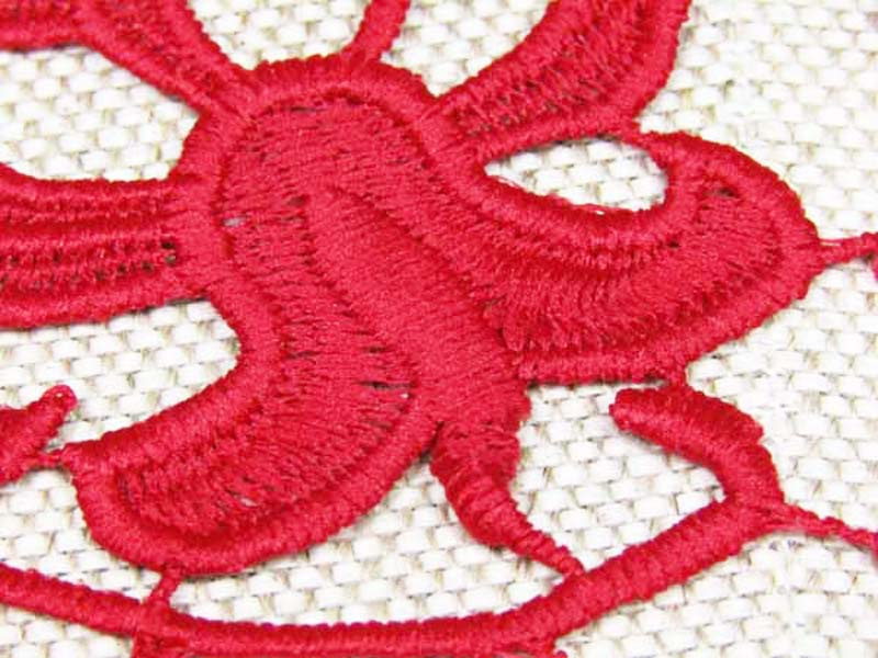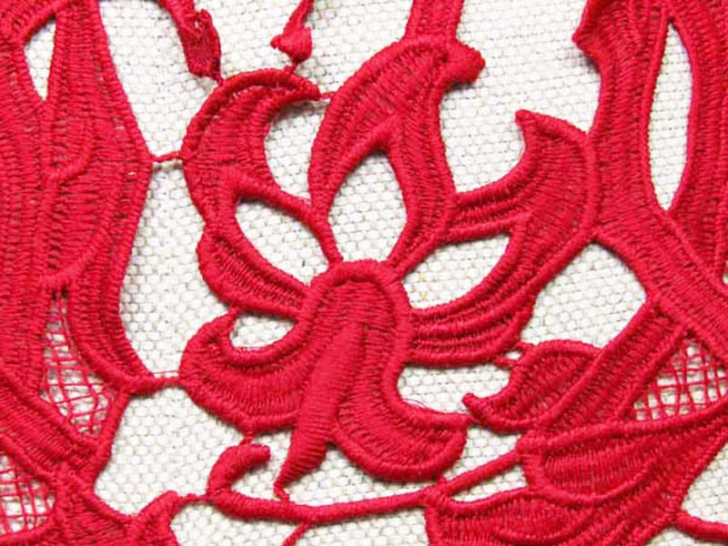 - Koronka gipiurowa wykonana z poliestrowej nitki o ażurowym wzorze.
