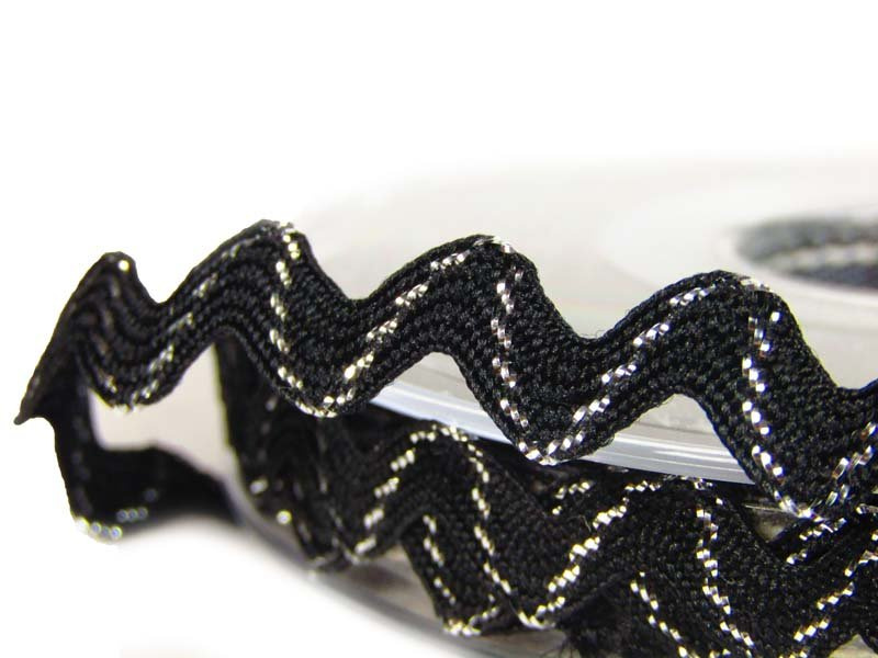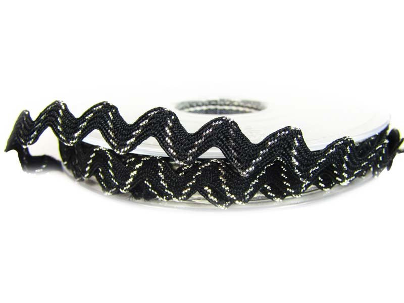 Poliestrowa taśma ząbkowana z dodatkiem nitki lurexowej używana do konfekcji i dekoracji.