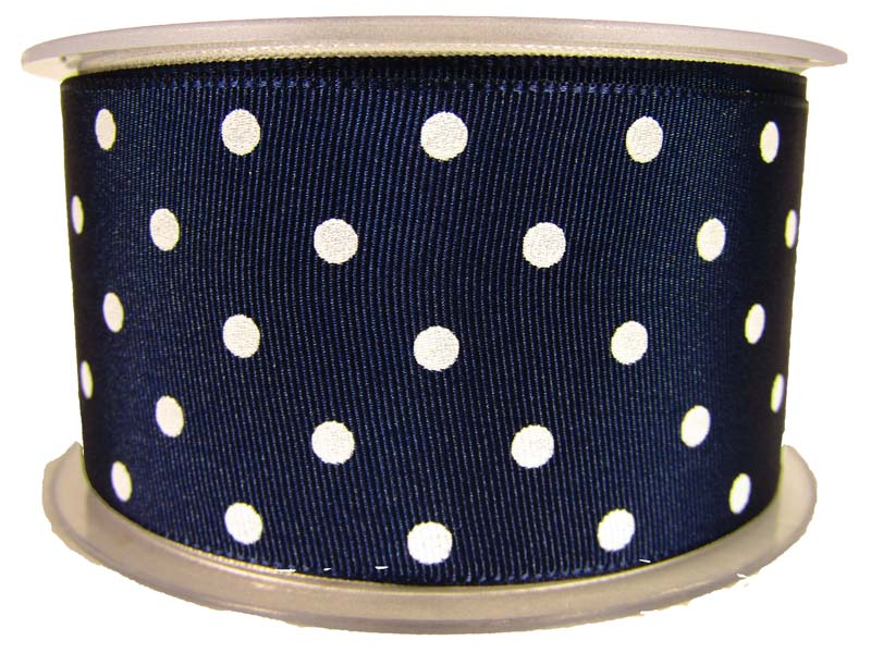- Wstążka rypsowa o szerokości 4,8cm z dwustronnym białym nadrukiem kropek.