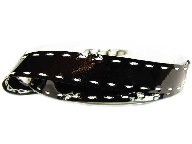 Taśma wykonana z lakieru eco skóry z białym stebnowaniem o szerokości 1,5cm w kolorze.