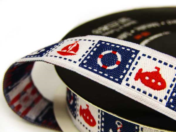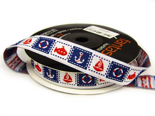 - Taśma haftowana o szerokości 1,5cm z motywem marynistycznym w bi-kolorze.