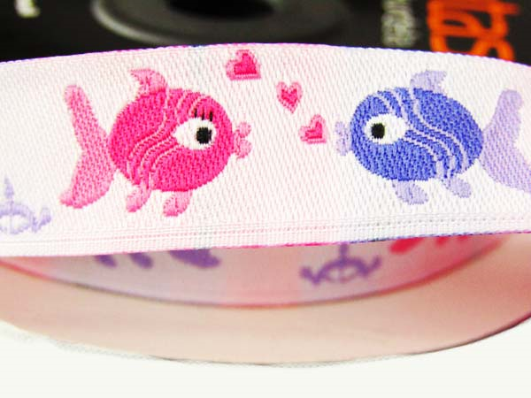 Tasma 16mm żakard RYBKA biała