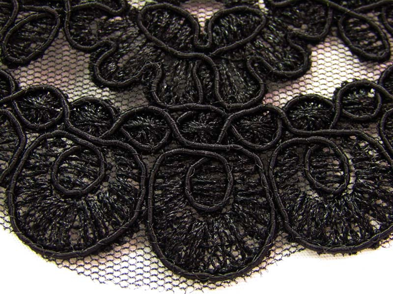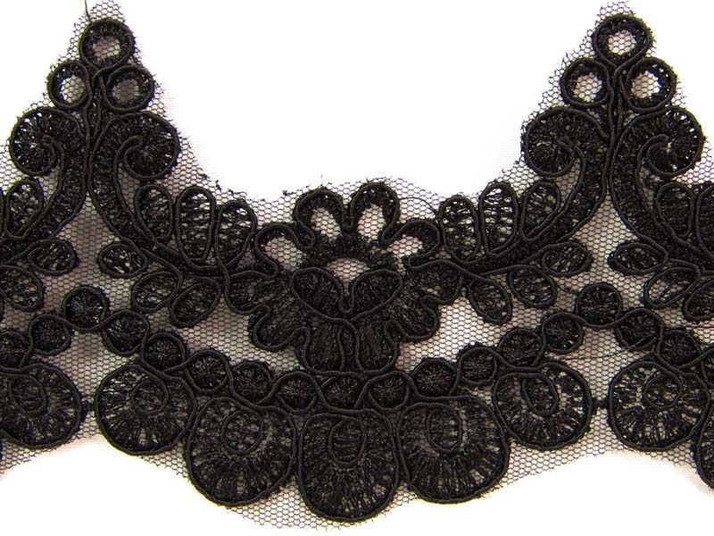 - Koronka haftowana na tiulu o szerokości 8,5cm w kolorze czarnym.