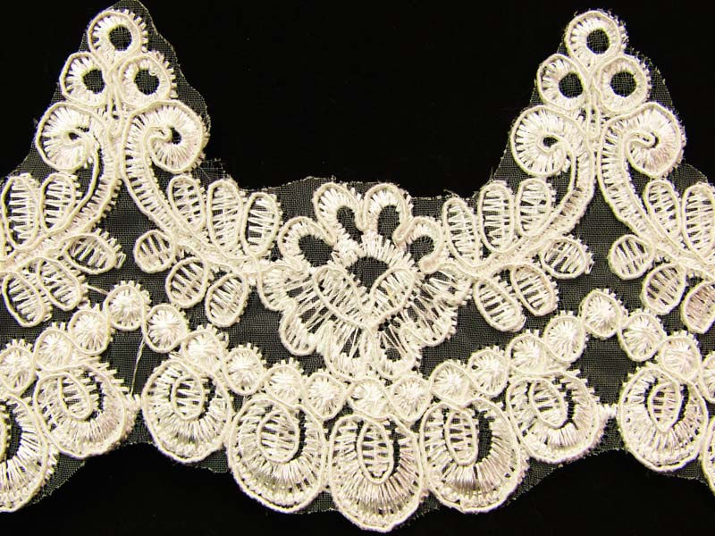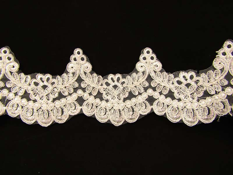- Koronka haftowana na organtynie o szerokości 8,5cm w kolorze kości słoniowej.