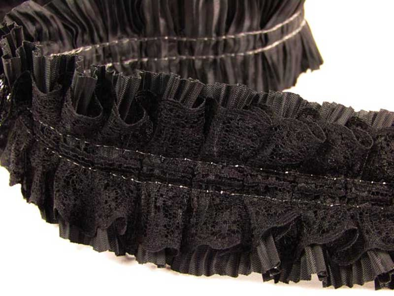 Taśma o szerokości 5cm z plisowaną tkaniną i marszczoną koronką w tym samym kolorze.