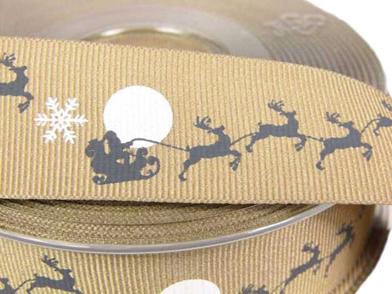 Wstążka rypsowa o szerokości 2,5cm z nadrukiem świątecznym w kolorze.