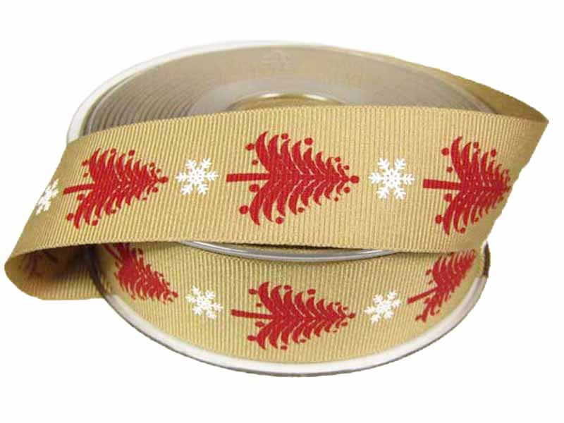 Wstążka rypsowa o szerokości 2,5cm z nadrukiem świątecznym w kolorze.