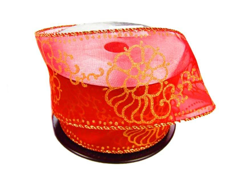 Wstążka świąteczna o szerokości 6cm z pięknym złotym, świątecznym nadrukiem.  Dodatkowo wyposażona w drucik na obu brzegach.